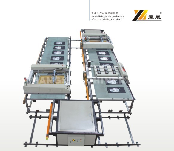 温州市益彰印刷机械有限公司研制的翼展牌SPT系列全自动台板式平网印花机是目前国内先进的新一代适用型台板全自动印花设备。